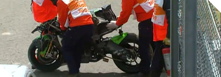 With this we now look down the Veenslang straight, crucial for those who want to master this track, many overtakes were built from this crooked straight and finished in the next historical point of the track, the Ruskenhoek corner. There are no small crashes in Assen, you have to string together these corners at a very high speed. 2008, John Hopkins almost payed with his life in the Ruskenhoek. He lost control at such a high speed the gravel couldn’t stop him, from bombing into the wall. The bike was so torn apart, the commentators couldn’t tell which Kawa rider crashed.